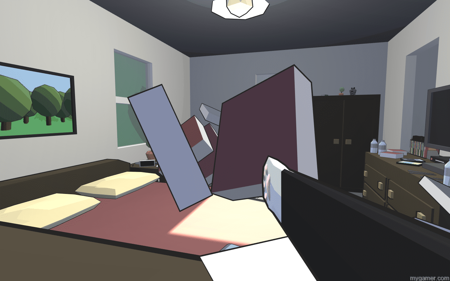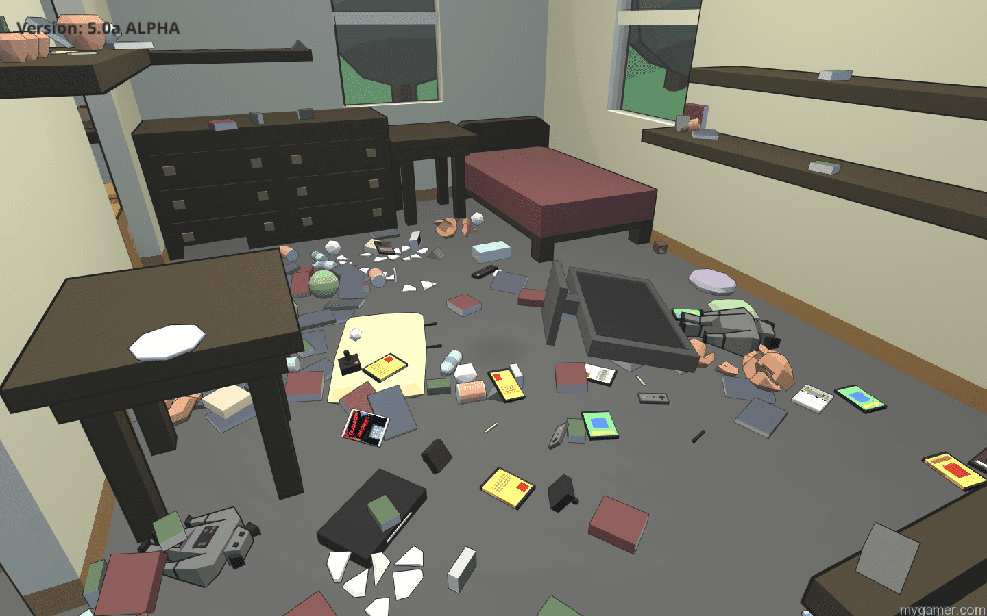If only the game’s destruction brought more of a crunch via its sound production and visuals or were more over-the-top in its settings – maybe a zero-gravity space environment or a room with reverse gravity, I might turn my favor. The game’s soundtrack is surprisingly inoffensive. Going in, I could’ve sworn I was in for corny jazz fusion – I’m looking at you Miko Mole – but was instead treated to notably soothing electronic keyboard tunes with a nice pop to them. CD features a sort-of half cel-shaded aesthetic that’s colorful and at leasts gets the job done. I was really impressed with the variety of object models featured in-game. There are plenty of plain dishes, books, and papers to deal with but a few robot toys, monster plushies, and video game controllers successfully kept the world from feeling too sterile.