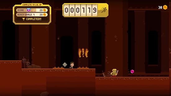 This is an action platformer with the goal of making it as far as you can before succumbing to a hazard or enemy. What is strange though is the non-random gameplay. Take Jetpack Joyride for example. Although the gameplay is the same thing every time, the placement of hazards, enemies, and coins are different with each attempt. Here, the player plays through the same stages in hopes of simply reaching a little further this time, learning from previous mistakes. Playing a runner with the same exact stage doesn’t feel right and becomes grindy quickly.