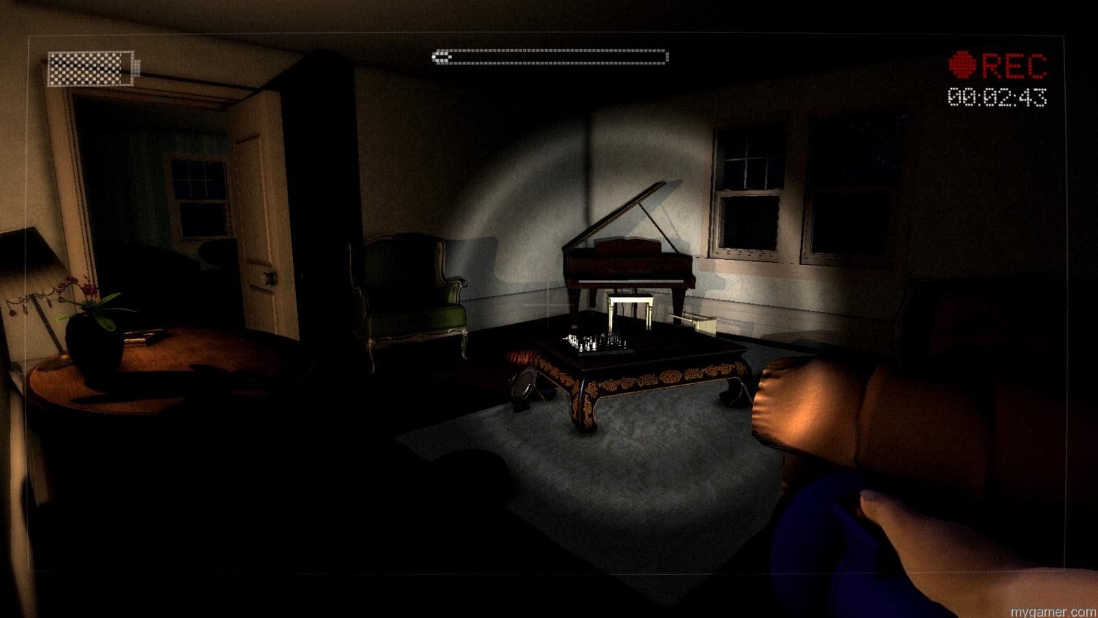 The game’s first-person camera control is similarly uneasy and is limited to only four arbitrary sensitivity settings labeled “low,” “normal,” “high,” and “very high.” Both movement and camera commands react only to thumbsticks pressed against the edge of their radii, resulting in an artificial lag and controls that feel unresponsive. Furthermore, the game’s tunnel vision-like, nonadjustable FOV makes gameplay that’s already tedious disorienting and nigh insufferable. One may argue that the restrictive FOV adds to the title’s immersion by representing the limited peripherals of the characters’ in-game camcorders; however, taking immersion into account does not remedy the game’s consequential unpleasant feel.
