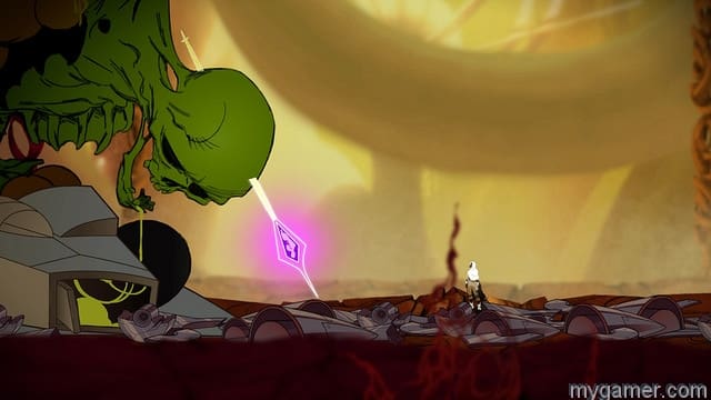Sundered takes place in a place of ruin, beneath which lies ancient enemies and incredible powers.  You play Eshe, but beyond a name, a slightly Arabian look, and a vague goal, that’s really all you have to go on. In a mix of crafted and procedurally generated levels, you have to face huge swarms of enemies, and single yet powerful bosses. It has the classic maps of yore, easy to understand yet hard to master. You know where you need to go, the boss’ icon taunts you with every room, but it’s a real journey to get there. It has all the hallmarks of Metroidvania, with small incremental upgrades that unlock a different part of the map, several bosses checking your skill at each point, so that it never seems boring, and you can easily gauge how strong you’ve become.