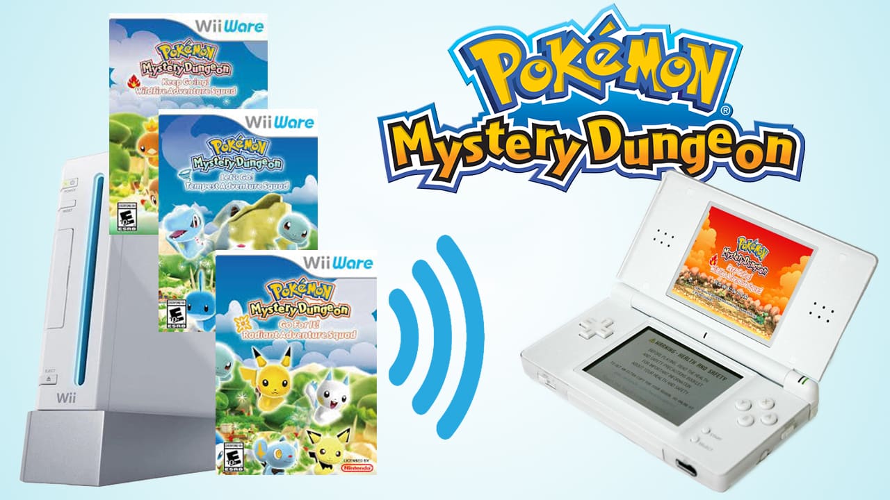 There were three Japan-exclusive WiiWare Pokemon Mystery Dungeon games: Pokémon Mystery Dungeon: Let’s Go! Stormy Adventure Squad, Pokémon Mystery Dungeon: Go For It! Light Adventure Squad, and Pokémon Mystery Dungeon: Keep Going! Blazing Adventure Squad (fire, water, electric). This trilogy is often referred to as the Adventure Squad series (2009).